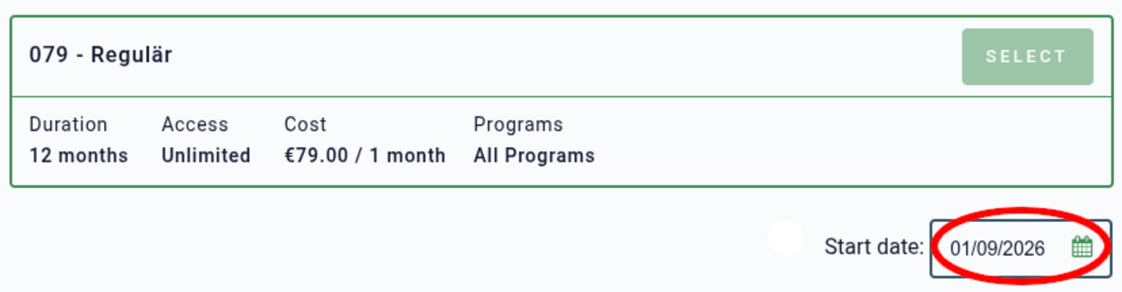 Bei der Anmeldung sollte bei "Start date" der 01.09.2026 ausgewählt werden, sonst bucht unser System leider zu früh ab.